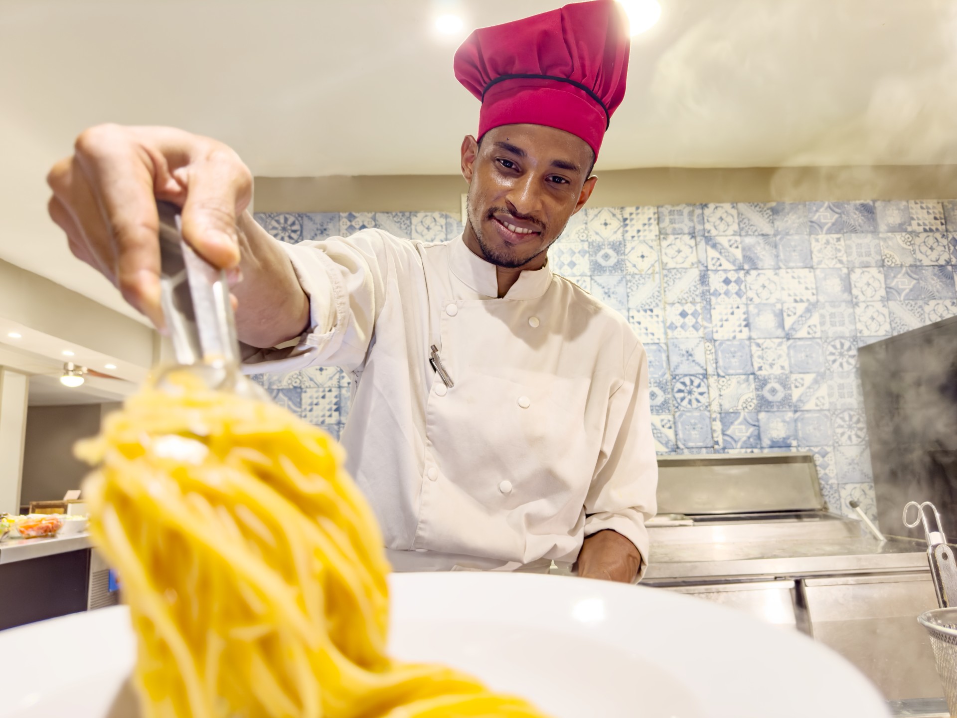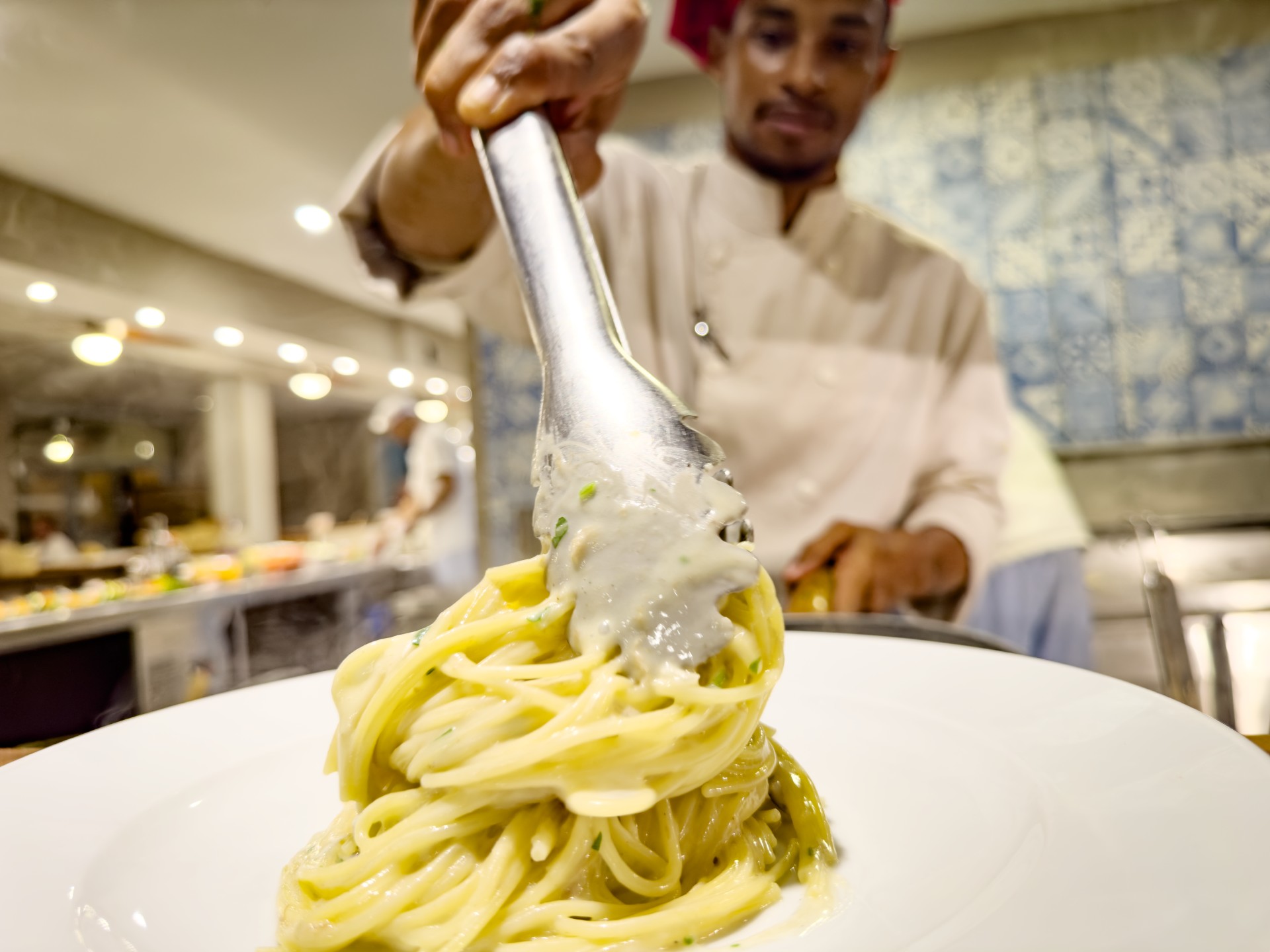 E’ presente una postazione show-cooking per primi piatti cucinati al momento. Pane, dolci e prodotti da forno sono tutti fatti in casa e sfornati quotidianamente dalla nostra padaria locale.